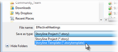 د- از کشوی Save as type گزینهی Storyline Template را انتخاب کنید.